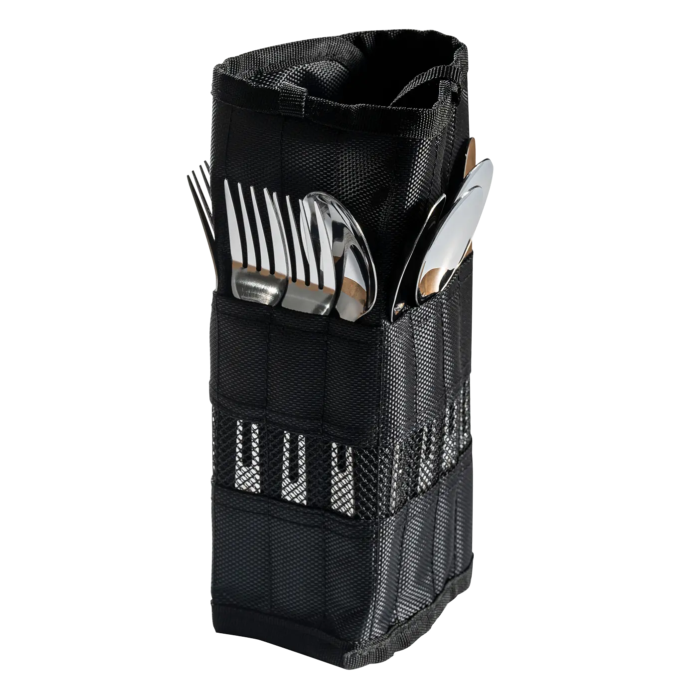 I denne kan du lagre alle dine viktige småting som du trenger for å gjøre friluftslivet lettere og mer morsomt, hyllen henges lett tilgjengelig under teltets plattform og kan rulles sammen til en hendig bag med håndtak når det er på tide å bryte opp og finne seg ny leir.